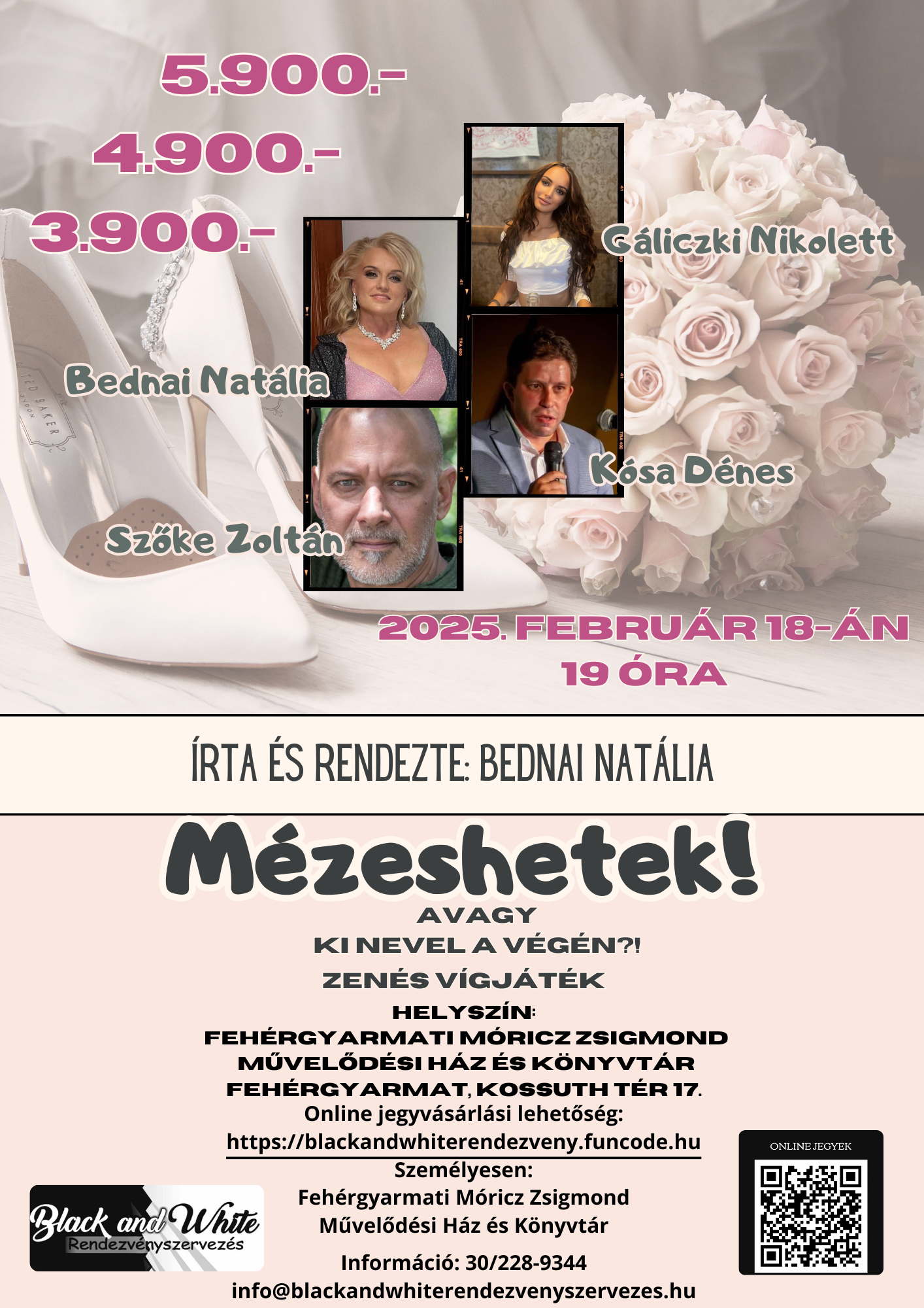 Jegyek kaphatóak a Fehérgyarmati Móricz Zsigmond Művelődési Házban, illetve online a https://blackandwhiterendezveny.funcode.hu/browse oldalon